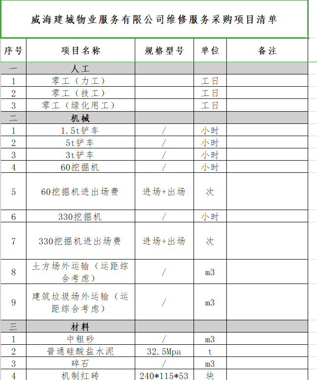 威海建城物業(yè)服務(wù)有限公司維修服務(wù)采購(gòu)項(xiàng)目