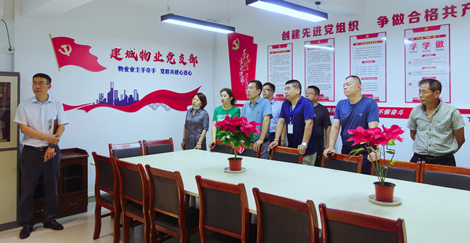 話黨建、共交流、拓思路、謀發(fā)展。為進一步加強黨建互動,積極交流先進經(jīng)驗,切實提高集團黨建工作水平,7月21日,集團黨委副書記孫曉東同志、黨委委員呂文秀同志帶隊,組織集團黨務工作者來到建城物業(yè)公司,學習觀摩紅色物業(yè)黨建陣地。