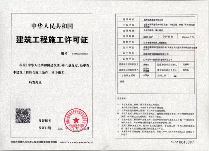 建設(shè)單位:威海城建集團有限公司                       負責人:吳曉東
