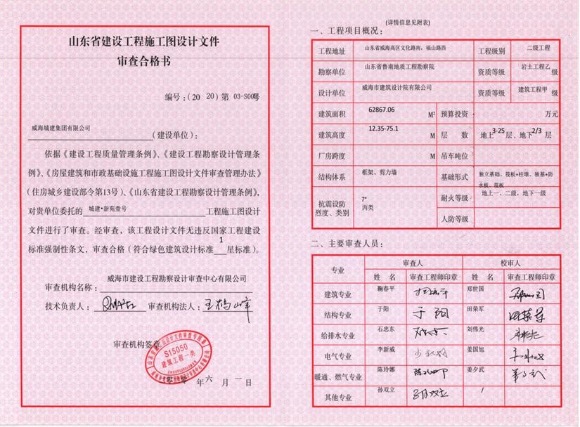 設(shè)計單位:威海市建筑設(shè)計院有限公司                 負責人:鄭顯利