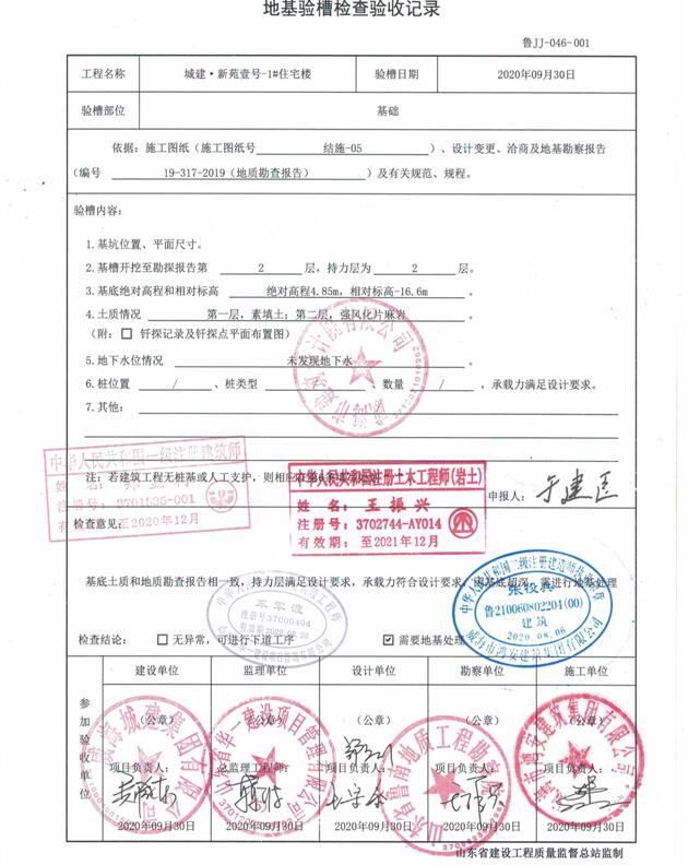 勘察單位:山東省魯南地質(zhì)工程勘察院                 負責人:王振興