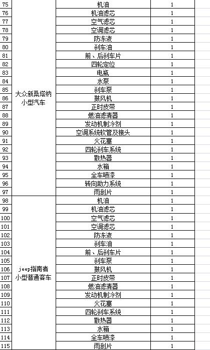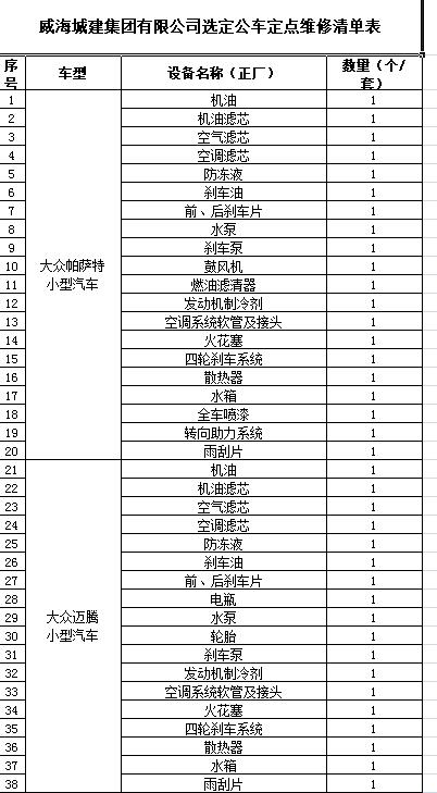 (4)采購內(nèi)容:威海城建集團(tuán)10輛公車定點維修保養(yǎng)等服務(wù)內(nèi)容,采購清單詳見附件。